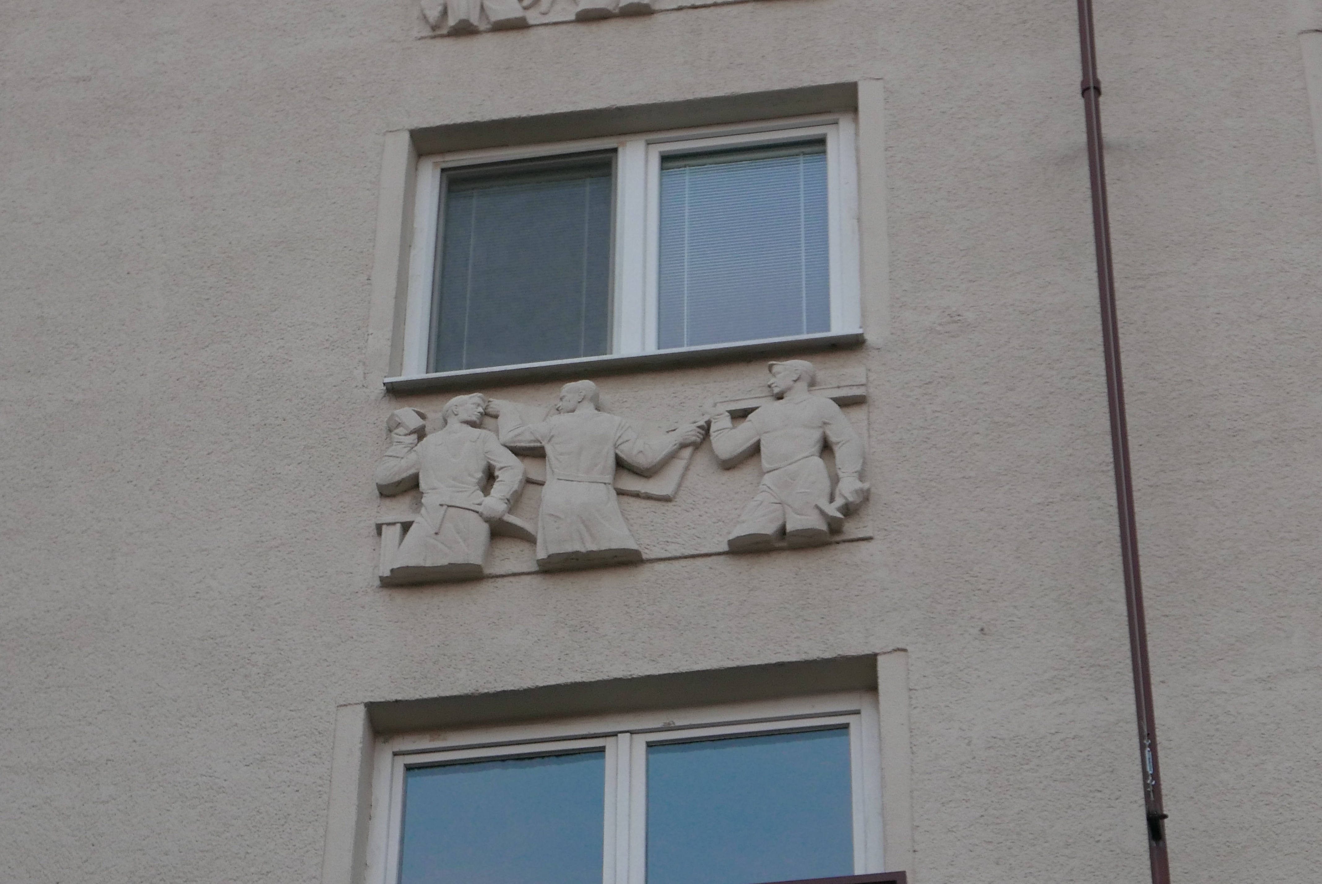 Dvojfigurálny reliéf sa nachádza v nike nad vchodom do bytového domu na Bernolákovej ul. č. 6. Nika je súčasťou vstupného kamenného portálu a ohraničená zboku jeho stojkami. Horizontálne komponovaný výjav matky s dieťaťom predstavuje typický výtvarný prejav päťdesiatych rokov 20. storočia v realistickom popisnom stvárnení postáv. Osadenie výtvarných diel nad vstupmi do domov charakterizuje počiatočné obdobie socialistického realizmu. Artefakty plnia zároveň úlohu domových znamení slúžiacich na lepšiu orientáciu v mestskom prostredí.