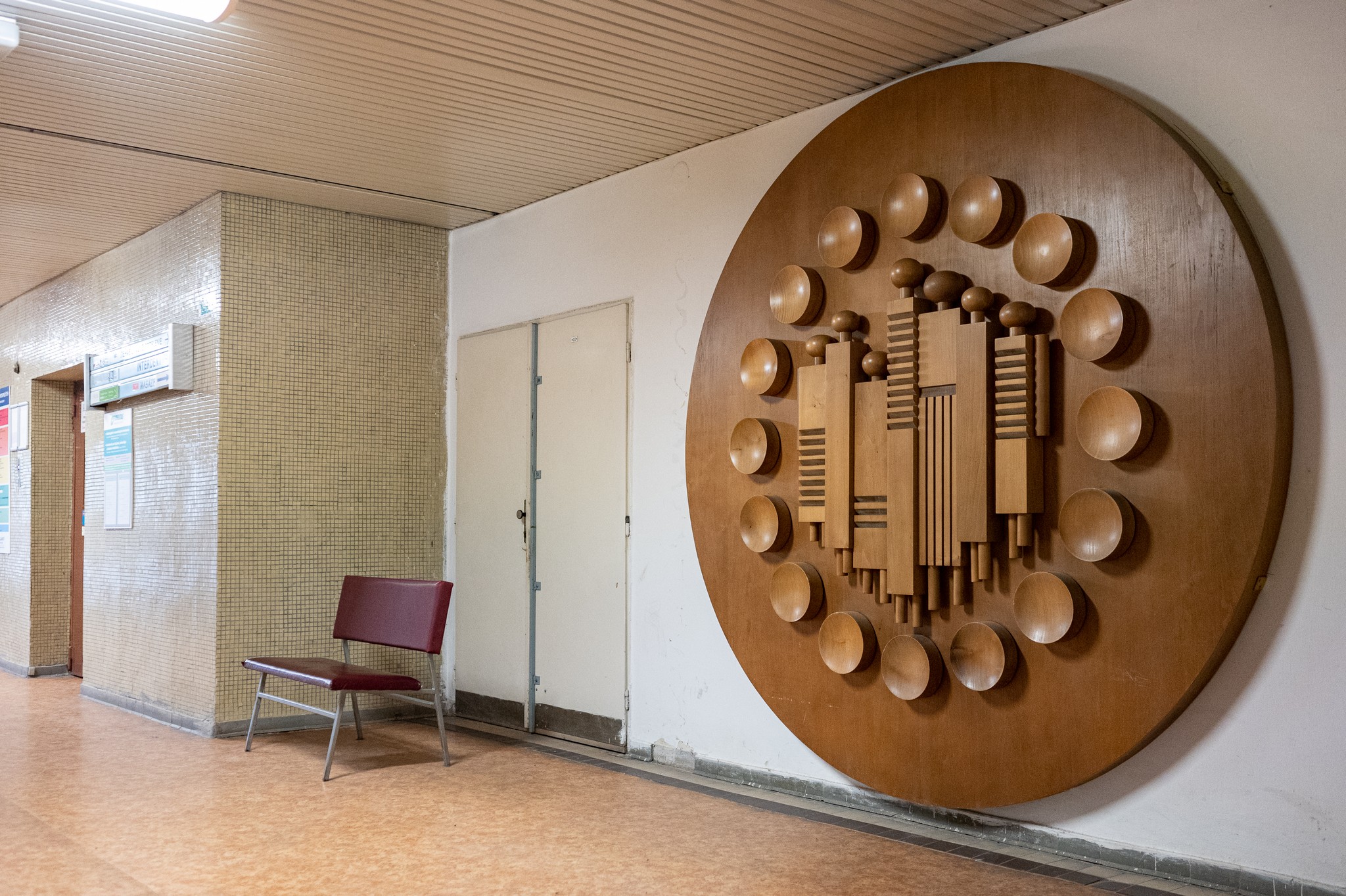 Medený reliéf pôvodne visel na fasáde jedálensko-spoločenskej časti vysokoškolského internátu Mlyny UK (hovorovo „Štúrák“) upevnený pomocou železnej konštrukcie. Fasáda tejto časti je obložená sklenou mozaikou v jemných modrastých odtieňoch. Na povrchu medeného reliéfu sa po zavesení na fasádu časom vytvoril tyrkysovozelený nános medenky a dielo opticky „zrástlo“ s fasádou.