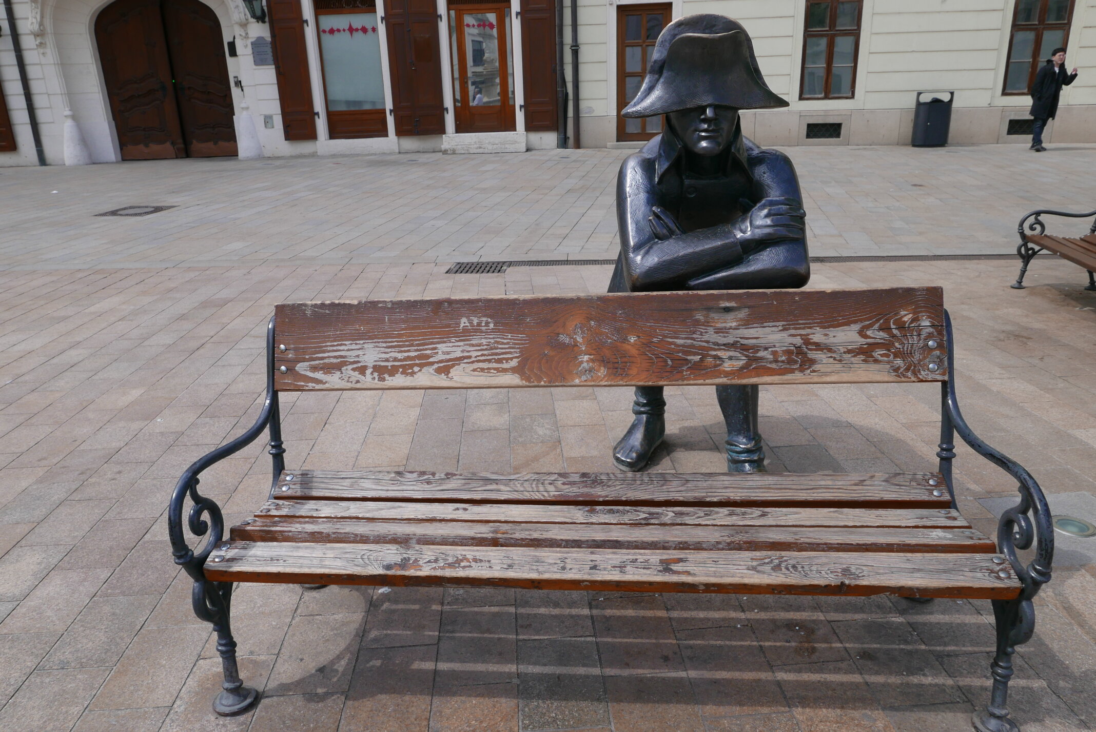 Búdku so štvorcovým pôdorysom jej autori – architekti a výtvarníci Marián Prešnajder, Otto Grossmann, Juraj Šimek a Ján Svítek – umiestnili vo východnej časti námestia pri strome a lavičkách. Steny má z bledého pieskovca, pričom vpredu i vzadu ich akcentujú veľké niky so zadnými stenami z tmavého lešteného kameňa. Kameň použili autori aj na zhotovenie sedlovej striešky. V prednej nike sa nachádza bronzová plastika stojaceho strážnika v mierne nadživotnej veľkosti, zaodetého do štylizovanej dobovej uniformy. Pravicou si pridŕža pušku a pozerá smerom na severozápad, t. j. na bývalý Miestodržiteľský palác a Františkánske námestie. Zo zadnej niky do priestoru vystupuje picia fontánka – kamenný podstavec s päťuholníkovým pôdorysným tvarom zakončený zaoblenou miskou z rovnakého materiálu. Jej dno akcentuje dýza spodobnená ako plastický štylizovaný mosadzný kvet. Tlačidlo na spustenie prúdenia vody je umiestnené na jednej z plôch päťbokého podstavca. Hladkú kamennú zadnú stenu niky nad picou fontánkou dopĺňa vyryté logo Bratislavskej vodárenskej spoločnosti, ktorá toto dielo darovala mestu a jeho obyvateľom.