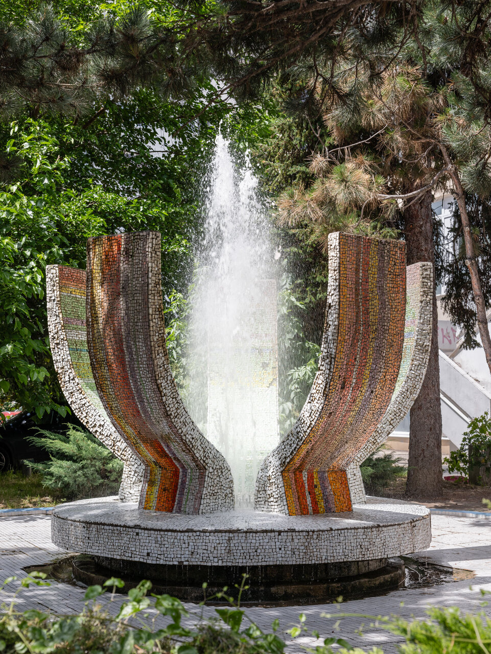 Oceľobetónová deliaca stena sa nachádza na detskom ihrisku uprostred sídliska Trávniky. Časť steny je sochársky stvárnená v podobe dvoch voľne stojacich plastických figuratívnych prvkov, ktoré sú poňaté plošne, akoby vystrihnuté z plochy steny a dotvorené nízkym reliéfom. Bočné strany steny, ktoré na tieto dva prvky nadväzujú, sú na strane, ktorá s nimi hraničí, podobne sochársky poňaté. Jednotlivé prvky sú silno geometricky štylizované, evokujú plošne stvárnené abstrahované figúry s povrchom plasticky štruktúrovaným jednoduchým reliéfom. Abstraktné plastické prvky perforujú plnú plochu steny a tak v nej vytvárajú bohato členené priezory.