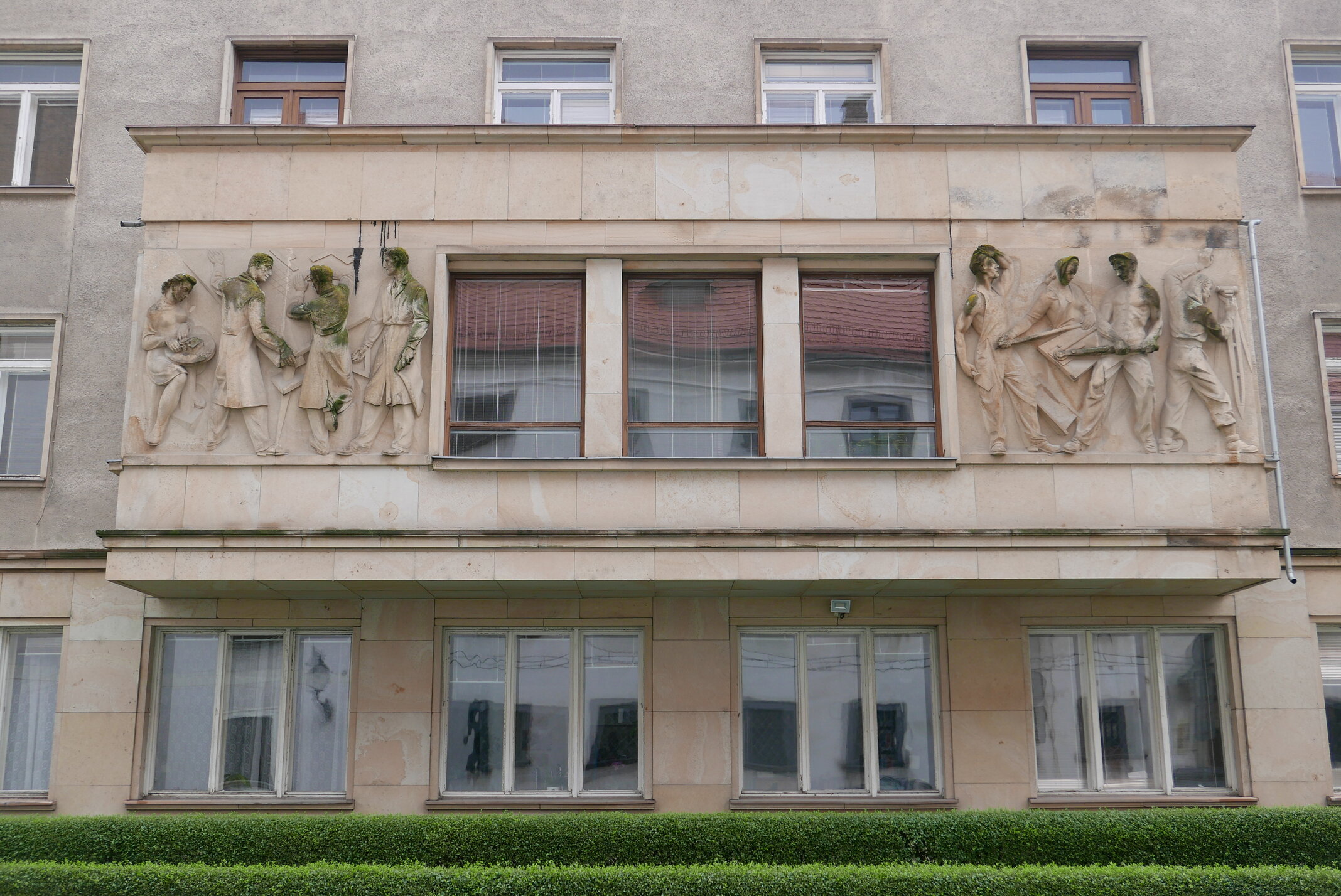Bronzová pamätná tabuľa orientovaná na šírku je osadená medzi oknami na členitej fasáde priamo nad soklom zo strany Uršulínskej ulice. Tabuľu autor veľmi tradične koncipoval ako spojenie portrétneho reliéfu a nápisovej platne. Ľavá časť obsahuje dvojjazyčný text v slovenčine a v nemčine, ako aj základne údaje o skladateľovi napísané tlačenými písmenami plasticky vystupujúcimi z pozadia plochy. V pravej časti je umiestnený portrét z profilu v nízkom reliéfe stvárnený realistickými výrazovými prostriedkami. Pod tabuľou sa nachádza konzola na zavesenie venca. Pre menšie rozmery, poškodenú patinu a nevýrazné písmená sú textová aj obrazová časť ťažko čitateľné a celok splýva.