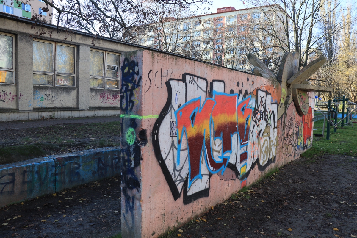 Mozaika na betónových stenách vyústenia ropovodu Družba