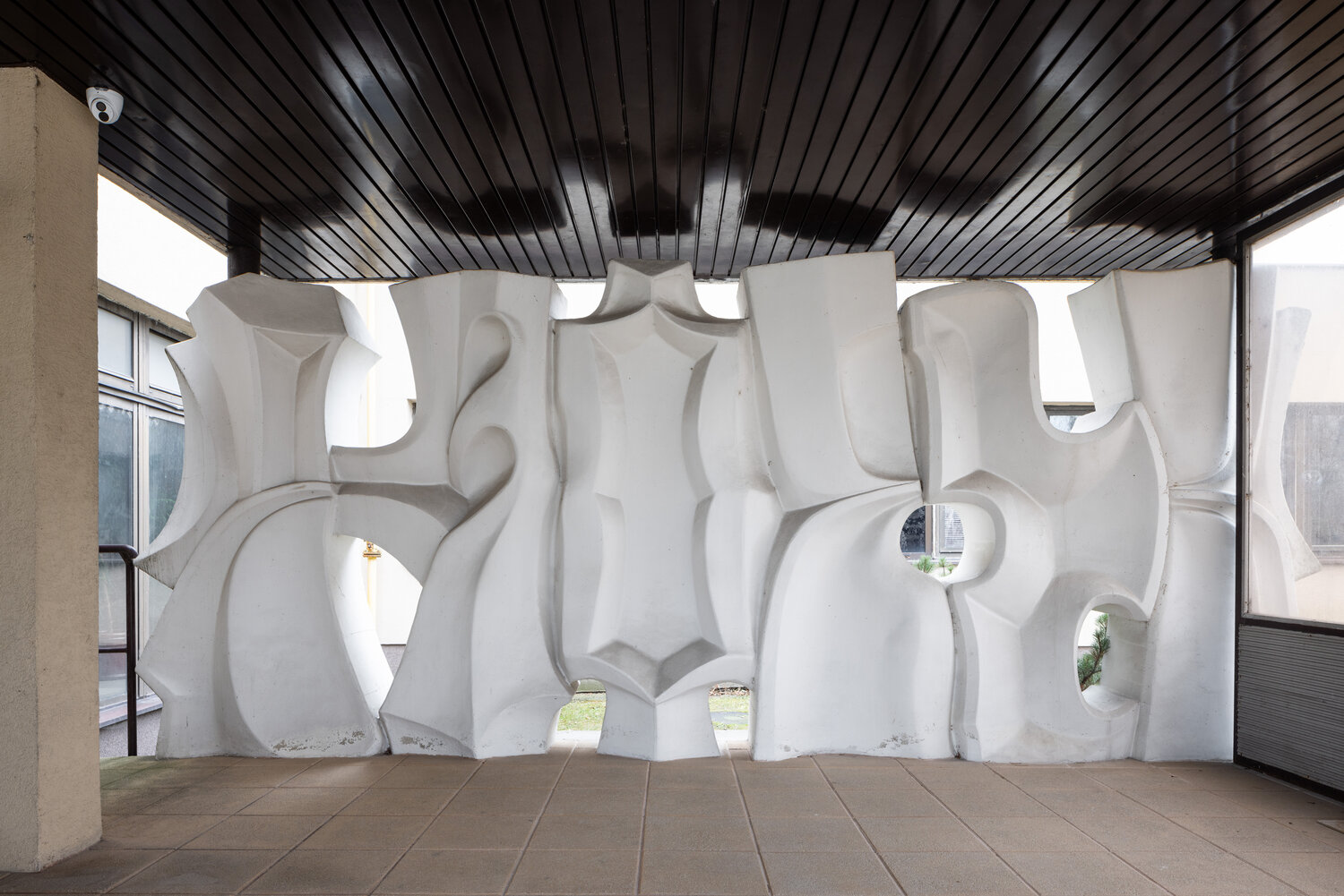 The work is sited on a lawn in the atrium of a hall formerly used for weddings and ceremonies, as designed in the early 1980s by the architect Juraj Hermann. The sculpture harmonises with the architecture, not only thematically, but also through the use of corresponding materials – light shades of Spiš travertine and Vratsa limestone.