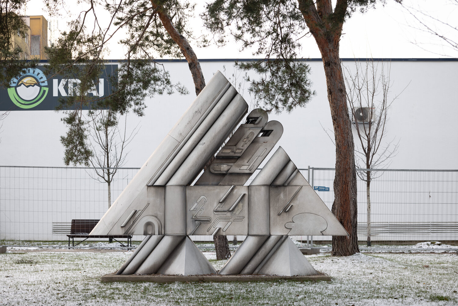 Leafing is set directly into a lawn near a popular beer pub (known colloquially as the Elephant), a playground, and a park that the district is in the process of revitalising. __Since installation of the work, the multi-genre event Remembering Dežo has been held in the park every September as part of the Bratislava Cultural Summer programme.